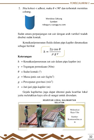 Kenaikan/penurunan fluida dalam pipa kapiler dirumuskan