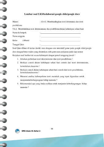 Lembar soal LKS/kolaborasi google slide/google docs