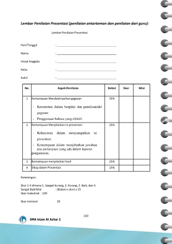 Lembar Penilaian Presentasi (penilaian antarteman dan penilaian dari guru):
