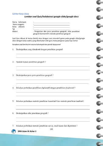 Lembar soal Quiz/kolaborasi google slide/google docs