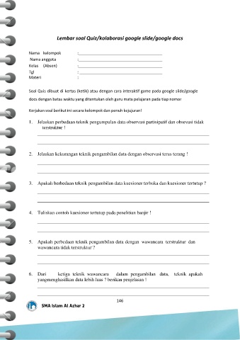 Lembar soal Quiz/kolaborasi google slide/google docs