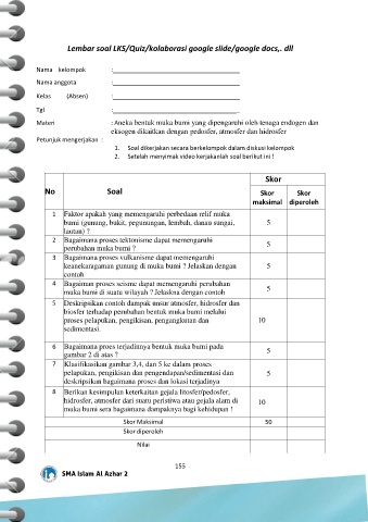 Lembar soal LKS/Quiz/kolaborasi google slide/google docs,. dll