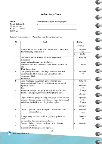 Petunjuk mengerjakan : 1. Pasangkan soal dengan jawabannya