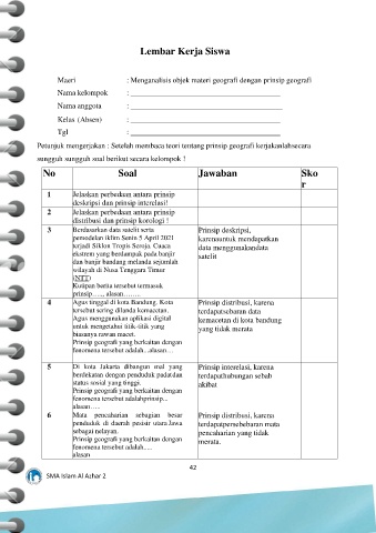 Petunjuk mengerjakan : Setelah membaca teori tentang prinsip geografi kerjakanlah secara