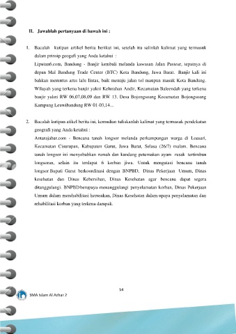 II. Jawablah pertanyaan di bawah ini :