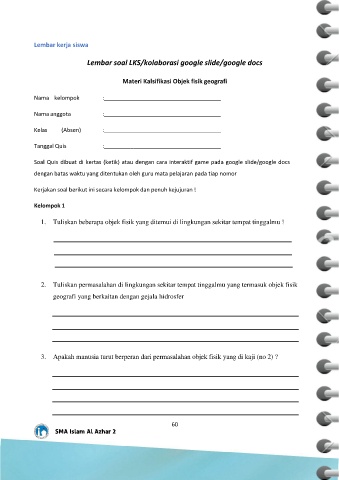 Soal Quis dibuat di kertas (ketik) atau dengan cara interaktif game pada google slide/google docs
