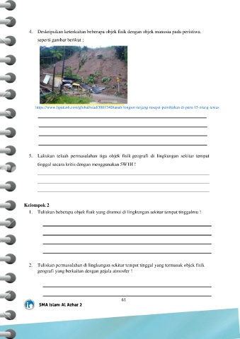 5. Lakukan telaah permasalahan tiga objek fisik geografi di lingkungan sekitar tempat