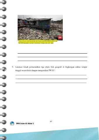 5. Lakukan telaah permasalahan tiga objek fisik geografi di lingkungan sekitar tempat tinggal secara kritis dengan mengunakan 5W1H ! 67 SMA Islam Al Azhar 2