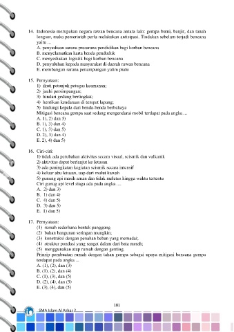 14. Indonesia merupakan negara rawan bencana antara lain: gempa bumi, banjir, dan tanah
