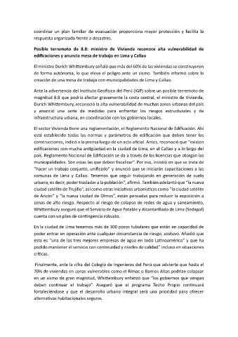 edificaciones y anuncia mesa de trabajo en Lima y Callao