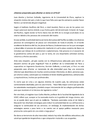 desastre sísmico de gran magnitud? Para el profesor de la Universidad de Piura y