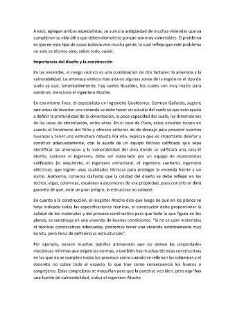 sismo. Asimismo, comenta Gallardo que la calidad del diseño se debe reflejar en los