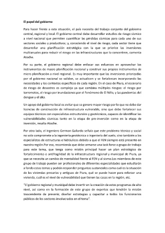 necesidades y los contextos específicos de cada región. En el caso de Piura, el escenario