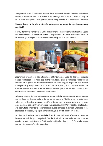 La ONG Hombro a Hombro y El Comercio vuelven a lanzar su campaña Estemos Listos,