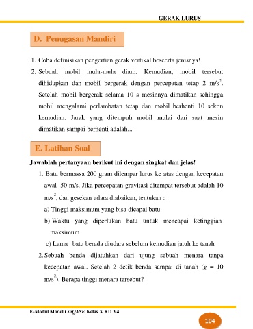 Page 110 - E-Modul Menggunakan Model CinQASE Kelas X Materi Gerak Lurus