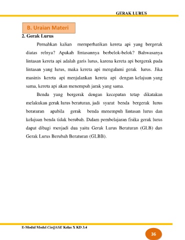 lintasan yang lurus, maka kereta api mengalami gerak lurus. Jika