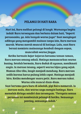 Hari ini, Rara melihat pelangi di langit. Warnanya begitu