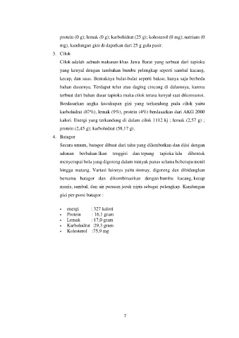 kalori. Energi yang terkandung di dalam cilok 1112 kj ; lemak (2,57 g) ;