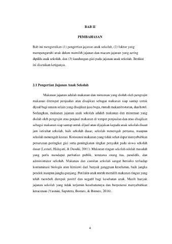 Bab ini menguraikan (1) pengertian jajanan anak sekolah, (2) faktor yang