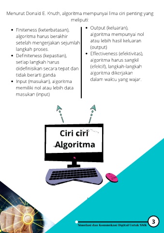 Menurut Donald E. Knuth, algoritma mempunyai lima ciri penting yang