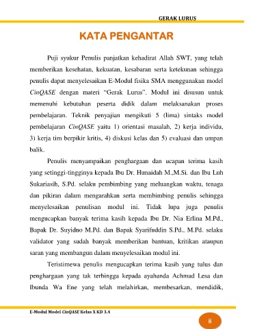CinQASE dengan materi “Gerak Lurus”. Modul ini disusun untuk