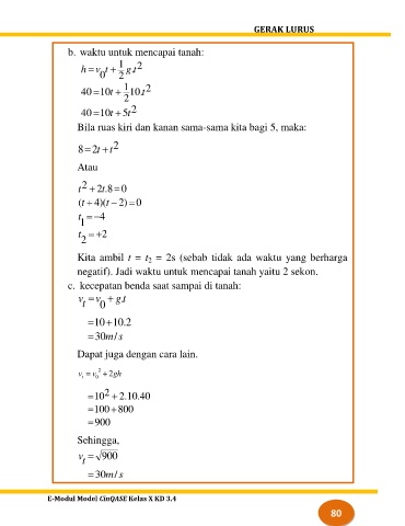 negatif). Jadi waktu untuk mencapai tanah yaitu 2 sekon.