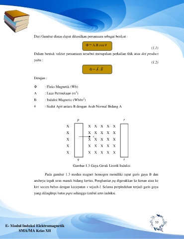 Pada gambar 1.3 medan magnet homogen memiliki rapat garis gaya B dan
