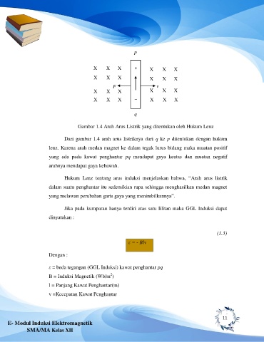lenz. Karena arah medan magnet ke dalam tegak lurus bidang maka muatan positif