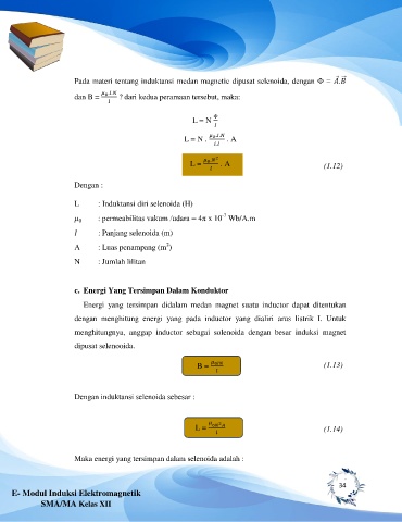 Pada materi tentang induktansi medan magnetic dipusat selenoida, dengan Ф = .