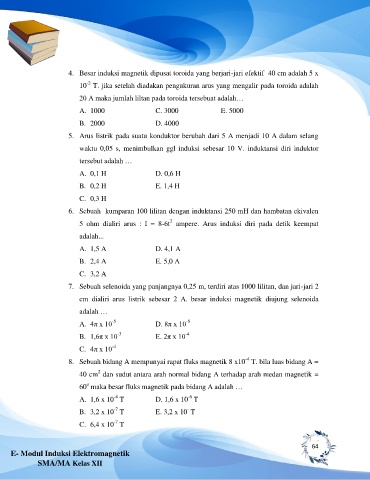 4. Besar induksi magnetik dipusat toroida yang berjari-jari efektif 40 cm adalah 5 x