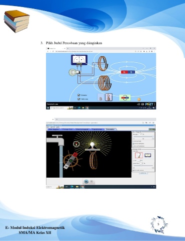 3. Pilih Judul Percobaan yang diinginkan 5 E- Modul Induksi Elektromagnetik SMA/MA Kelas XII