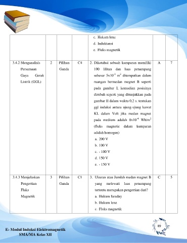 3.4.2 Menganalisis 2 Pilihan C4 2. Diketahui sebuah kumparan memiliki A 7