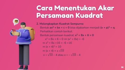 Bentuk persamaan kuadrat: x + 8x + 6 = 0