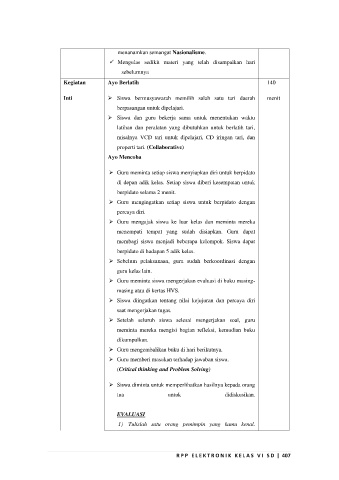 Inti ➢ Siswa bermusyawarah memilih salah satu tari daerah menit