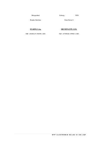 Mengetahui Sabang, 2020 Kepala Sekolah, Guru Kelas 6 SUARNI, S.Ag. SRI MENANTI, S.Pd. NIP. 19640125 198309 2 001 NIP. 19740926 199903 2 003 R P P E L E K T R O N I K K E L A S V I S D | 427