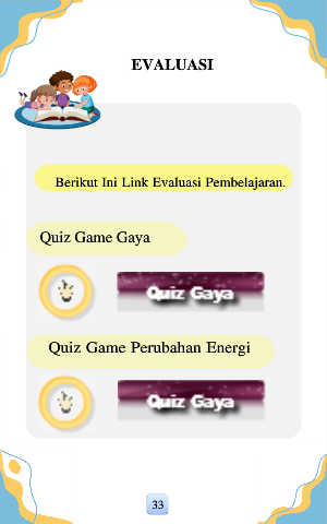 EVALUASI Berikut Ini Link Evaluasi Pembelajaran. Quiz Game Gaya Quiz Game Perubahan Energi 33