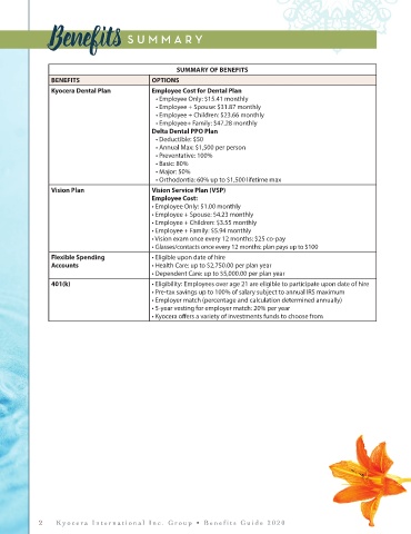 Page 2 - 2020-2021 Kyocera Benefits Summary