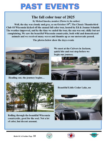 Club Of Wisconsin kicked off the annual fall color tour, hosted by Ed & Joanne Schmidt.
