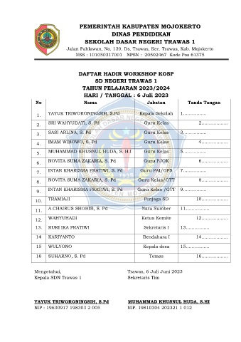 Mengetahui, Trawas, 6 Juli Juni 2023