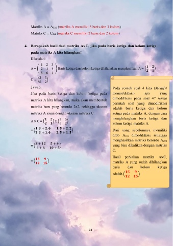 4. Berapakah hasil dari matriks A×C, jika pada baris ketiga dan kolom ketiga