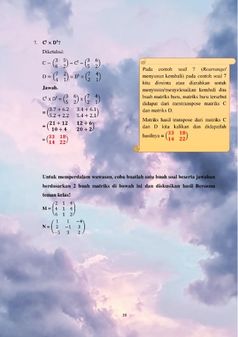 C x D = ( 3 6 ) x ( 7 4 ) buah matriks baru, matriks baru tersebut