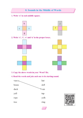 2. Write ‘e’, ‘i’, ‘o’ and ‘u’ in the proper boxes.