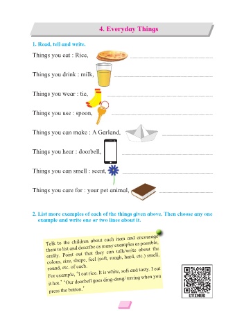 For example, ‘I eat rice. It is white, soft and tasty. I eat