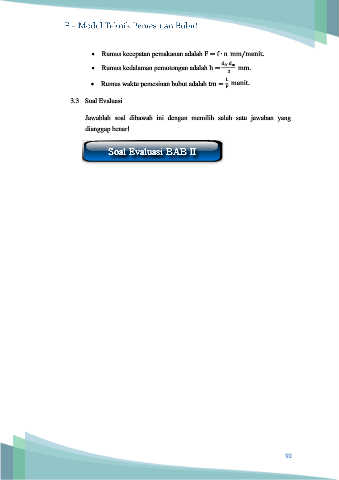 • Rumus waktu pemesinan bubut adalah tm = menit.