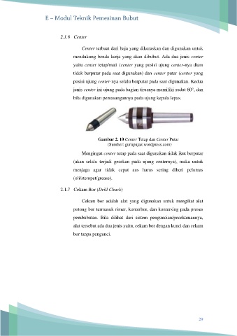 mendukung benda kerja yang akan dibubut. Ada dua jenis center
