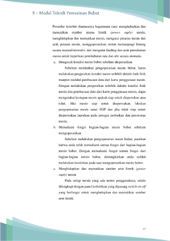 pengoperasian  mesin  seuai  SOP  dan  jika  tidak  siap  untuk