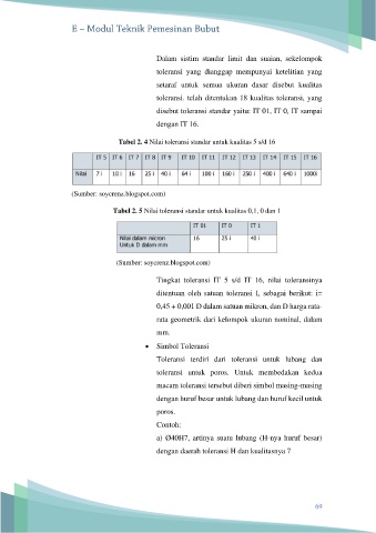 Tabel 2. 5 Nilai toleransi standar untuk kualitas 0,1, 0 dan 1
