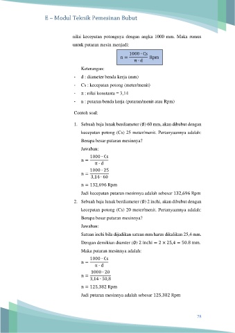 nilai kecepatan potongnya dengan angka 1000 mm. Maka rumus