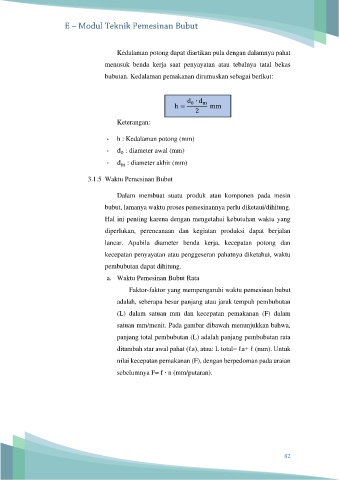 bubutan. Kedalaman pemakanan dirumuskan sebagai berikut: