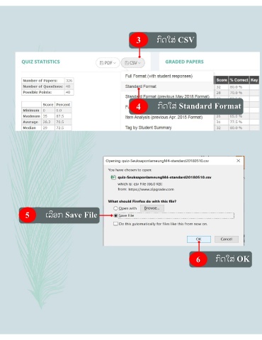 3 ົ ກດໃສ CSV ົ 4 ກດໃສ Standard Format ື 5 ເລອກ Save File ກດໃສ OK 6 ົ